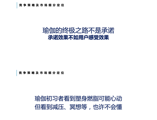 让用户以经济的价格,享受体面的服务;占领用户心智,占据普惠瑜伽中相对较高的位置。