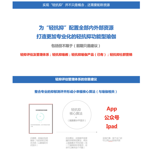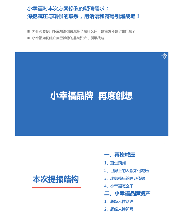 观速是这样为“小幸福”规划“轻抗抑”的逻辑。先展示下观速在《第一阶段提案》结束后,按照要求深挖“减压”,进行的修改部分(这里重点洞察中国女性抑郁人群的瑜伽式解决方案)。